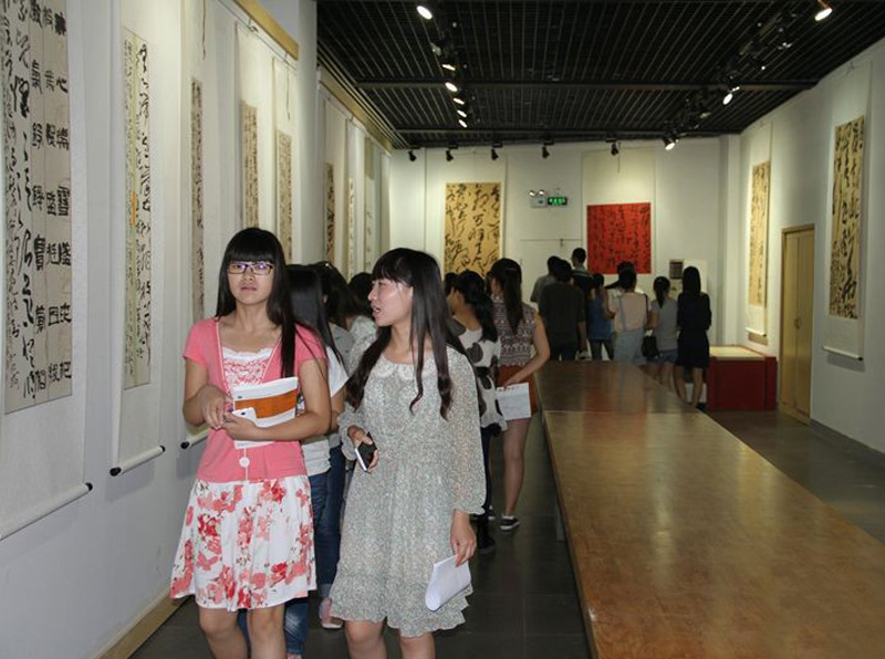 簡(jiǎn)潔熱鬧的開幕式后,數(shù)百名觀眾迫不及待的涌進(jìn)展廳。欣賞異彩紛呈,風(fēng)格各異的書法作品。