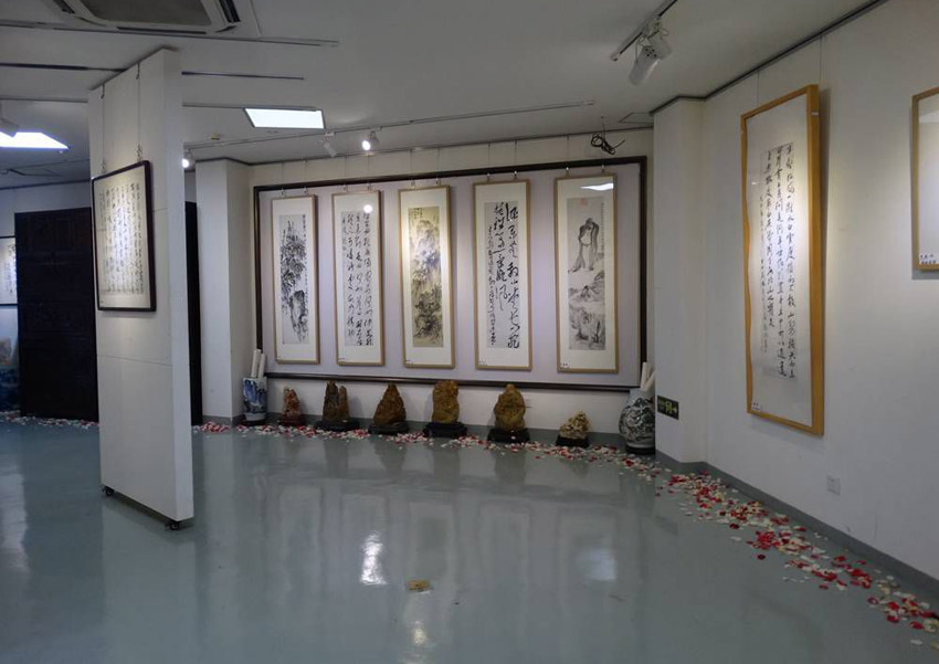 展廳清雅舒朗,來(lái)者文質(zhì)彬彬,無(wú)大聲喧嘩,僅得茶盞清音!展線書畫各持所長(zhǎng),無(wú)聲勝有聲。