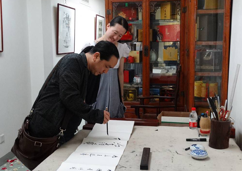尚儒董倚橋以國(guó)學(xué)經(jīng)典入手,行草溫和纏綿;尚禪申屠衛(wèi)政以佛學(xué)禪學(xué)入手,五體兼具,迭蕩起伏;尚道芾笠以道家理學(xué)入手,隸書厚重自然;尚樸賴昌平,山水篆書古樸平實(shí);尚素巨建偉,宋人花鳥人物清素典雅于紙端;尚意許飛飛,大草狂草驚風(fēng)驟雨,好不痛快淋漓;尚韻張圓滿平和簡(jiǎn)靜,直追晉漢!