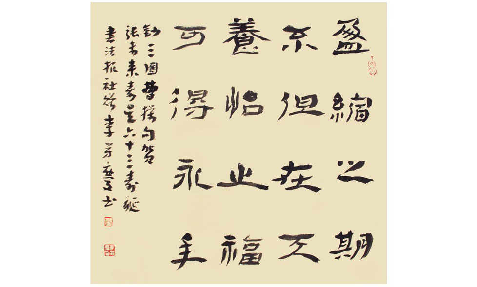 芳慶主席,其為人敦厚和善,亦師亦友,不失山東人本色,穩(wěn)健樸實(shí),尤擅隸書和章草。治學(xué)嚴(yán)謹(jǐn)而勤奮,不服老、不懈怠,謙恭祥和,悉心提攜幫助后生晚輩,贏得書協(xié)的共同贊譽(yù)