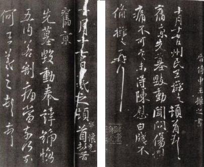 王羲之不但精于書寫尺牘書法,也善于撰寫尺牘文章。據(jù)《太平御覽》等類書引王羲之《月儀書》佚文,知其嘗有書儀之作。蓋書翰禮儀,本為魏晉六朝士族家庭之重要禮法之一,而瑯邪王氏尤為重視。王家尺牘曾被奉為“王太保家法”,子孫世代奉守相傳,且對世人起到示范作用。士族高門的禮數(shù)家法本身,往往也是一種顯示地位和身分的象征,因而被世人所效仿和追求。以瑯邪王氏后裔例之,如王彬之子彪之精通掌故朝儀,此在當(dāng)時是有名的。其曾孫王準(zhǔn)之,亦頗傳其學(xué),曾撰《書儀》一書,人稱其學(xué)為“王氏青箱學(xué)”。又如《宋書》卷四十二王弘傳記載王導(dǎo)曾孫王弘云:“既以民望所宗,造次必存禮法.凡動止施為及書翰儀體,后人皆依仿之,謂為王太保家法。”又南朝梁庾元威《論書》亦記王廙五世裔孫王延之名言:“勿欺數(shù)行尺牘,即表三種人身。”(《法書要錄》卷二)。這就是王氏一族多善尺牘(應(yīng)該包含書式與書法二層意義)的重要原因!额伿霞矣(xùn)》雜藝第十九記當(dāng)時江南流傳“尺牘書疏,千里面目”之諺,亦當(dāng)與士族注重書翰禮儀之風(fēng)尚有關(guān)。還有,王羲之生前書名已著,其書翰曾令友人庾翼嘆服。南朝宋虞龢《論書表》載“羲之書在始未有奇殊,不勝庾翼、郗愔,迨其末年,乃造其極.嘗以章草答庾亮,亮以示翼,翼嘆服.因與羲之書云:吾昔有伯英章草書十紙,過江亡失,常痛妙跡永絕.忽見足下答家兄書,煥若神明,頓還舊觀。”(《法書要錄》卷二)那么,王羲之本人完全有可能意識到或預(yù)想到,自己即將寄出的尺牘會被世人收藏并流傳后世。王獻(xiàn)之寄簡文帝書翰后附數(shù)語,囑咐對方保存自己的書翰,事見《論書表》:“子敬常箋與簡文十許紙,題最后云:‘民此書甚合,愿存之’。此書為桓玄所寶,高祖后得以賜王武剛,未審今何在。”(《法書要錄》卷二)于此可以想見王氏父子對其尺牘的珍重態(tài)度。所以有理由認(rèn)為,在一般情況下,王羲之在書寫尺牘時,無論是于書于文,都應(yīng)該是比較謹(jǐn)慎認(rèn)真的。因此他在與人書信時,極有可能保留底稿,或者書寫數(shù)通,然后擇其中于書法于文字都比較滿意者寄出,余下者若未廢棄,則成為底稿留存下來。這也比較容易解釋現(xiàn)存王羲之法帖中,為何存在一些內(nèi)容大多相同或相近的現(xiàn)象。例如有關(guān)延期官奴小女夭亡、亡兄靈柩垂至以及吊周嫂病亡諸帖,凡帖文相近、文字稍異者就有兩通甚至以上傳世.當(dāng)然這只是一個推測,因為還不能排除王羲之會以同樣文面的尺牘寄給多位親友的可能,由于現(xiàn)今傳世的尺牘內(nèi)容,已很難確知收信者為何人,故才會出現(xiàn)這種尺牘內(nèi)容“重復(fù)”的現(xiàn)象。